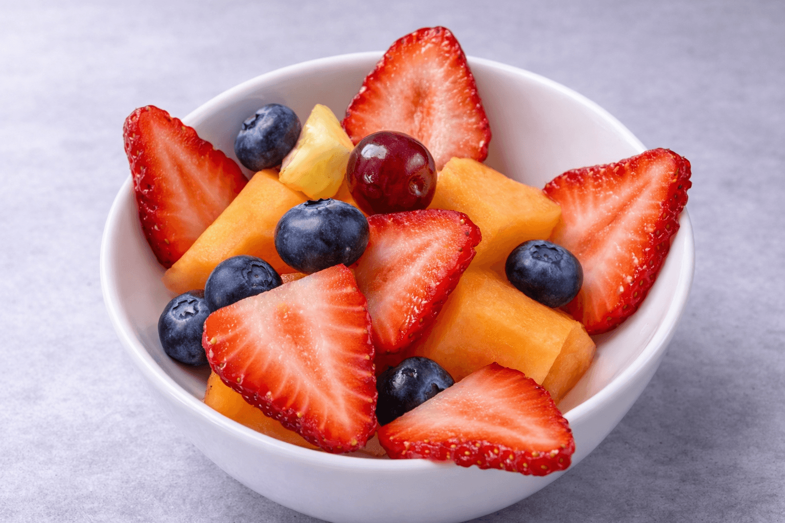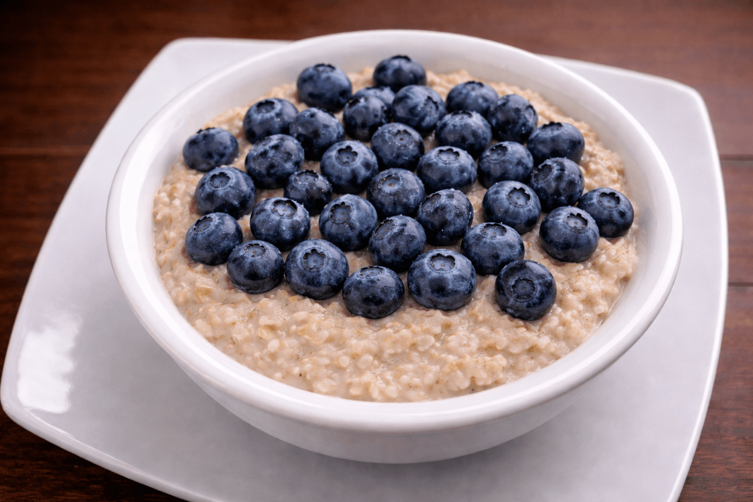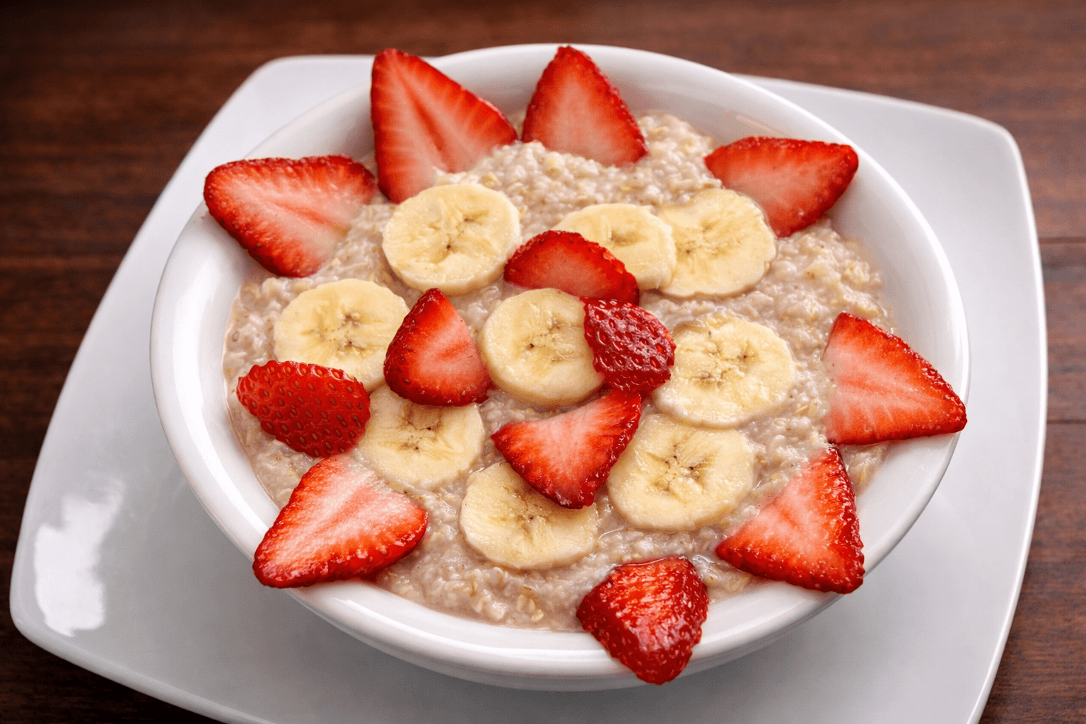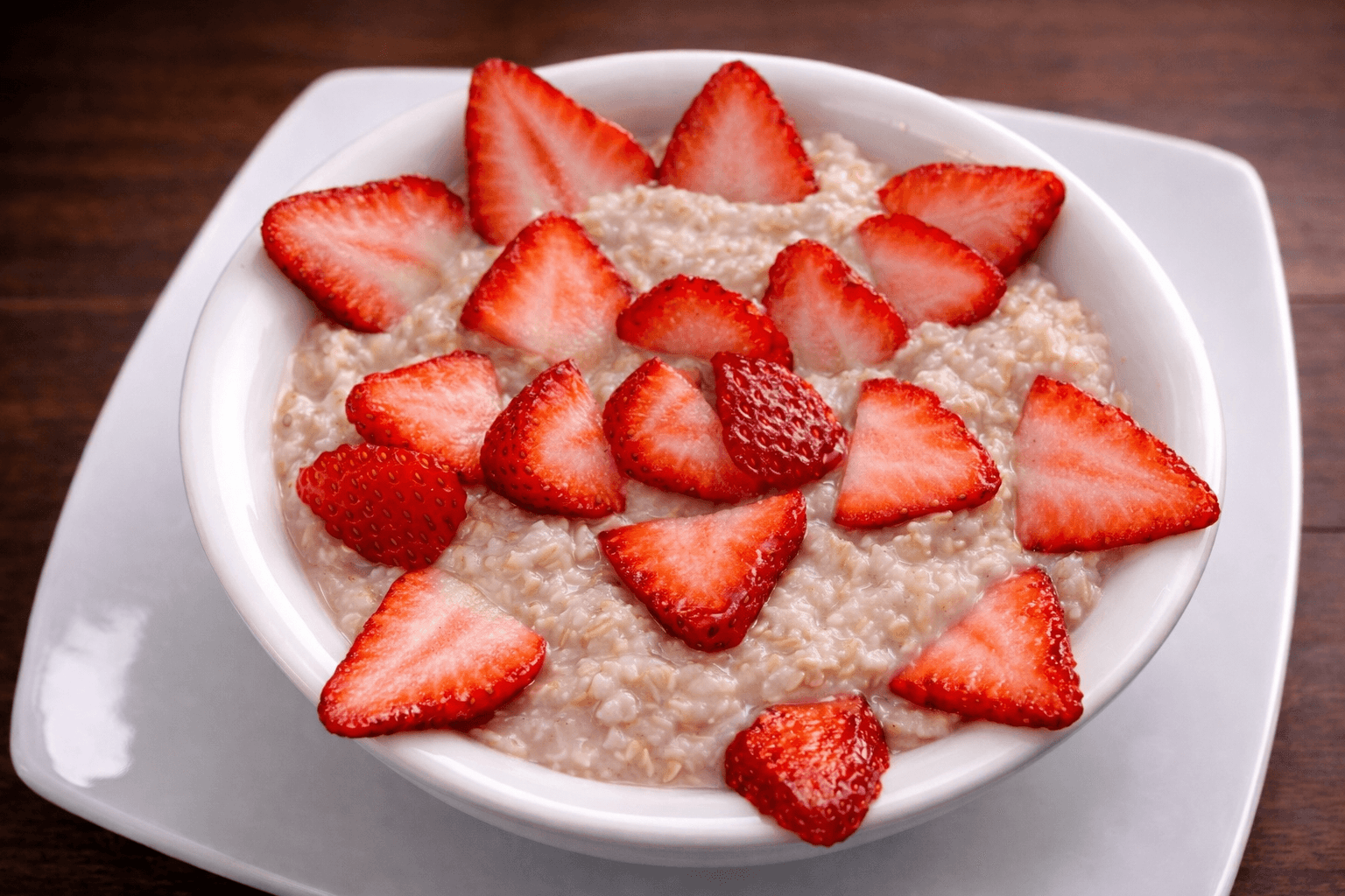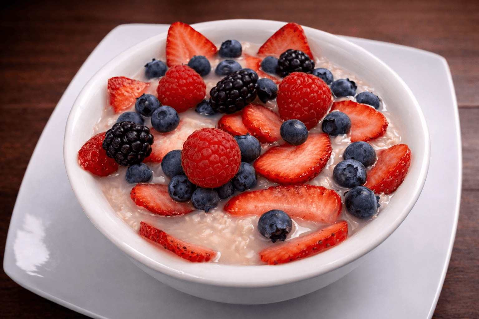 Bowl of oatmeal with strawberry, blueberry, blackberry and raspberry