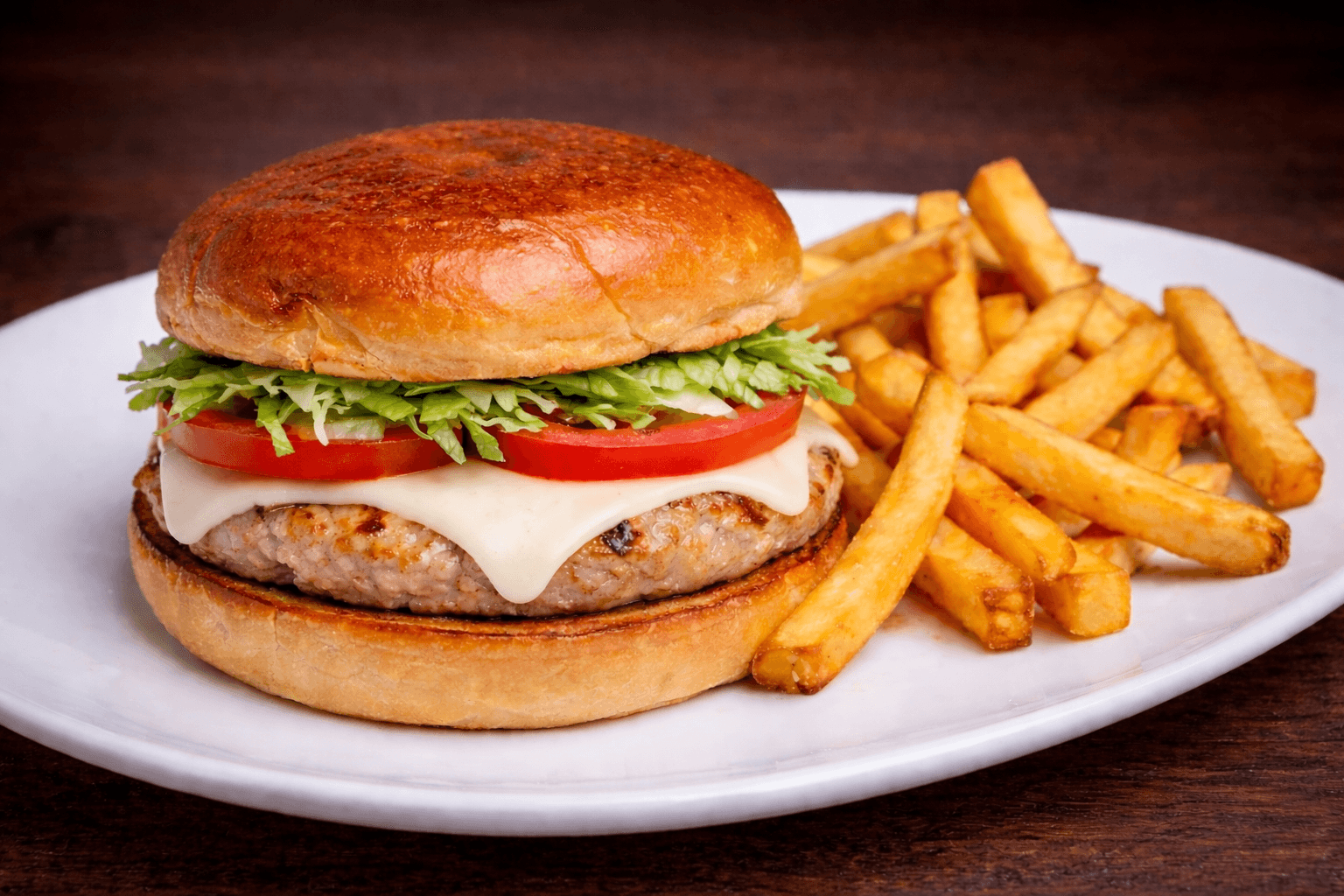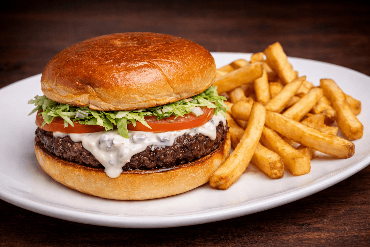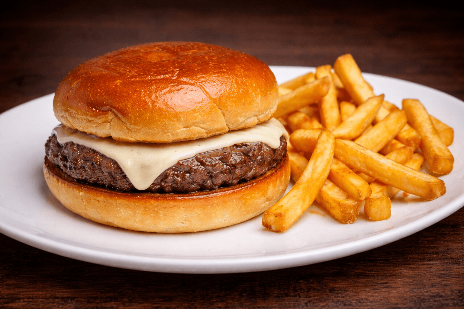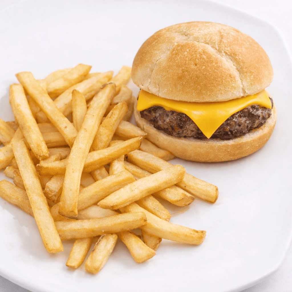 Grilled patty with American cheese on a brioche bun. Served with French fries