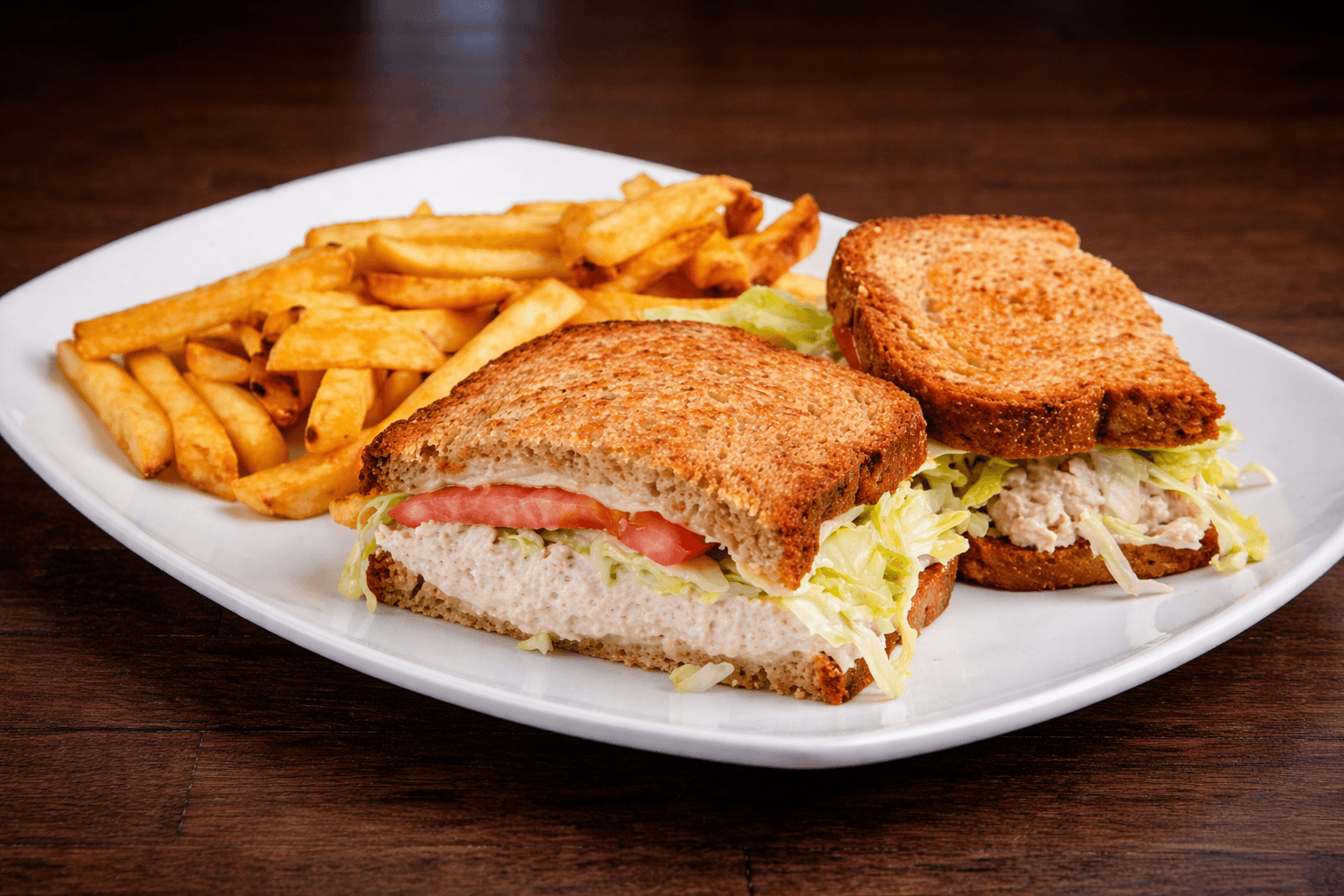 American cheese and tomatoes on country wheat bread. Served with French fries