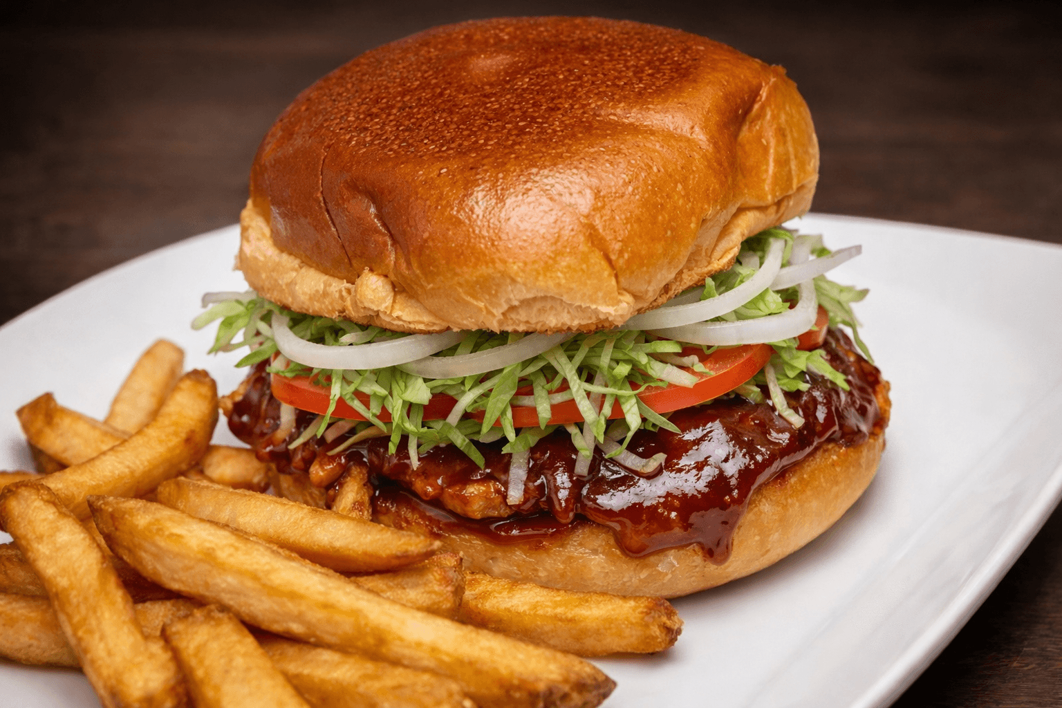 Cheddar cheese, lettuce, tomato and barbecue sauce. Served with French fries