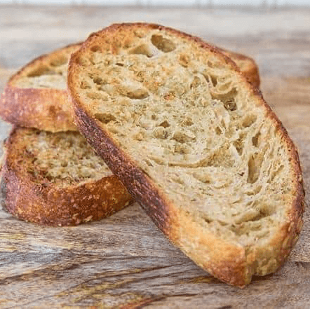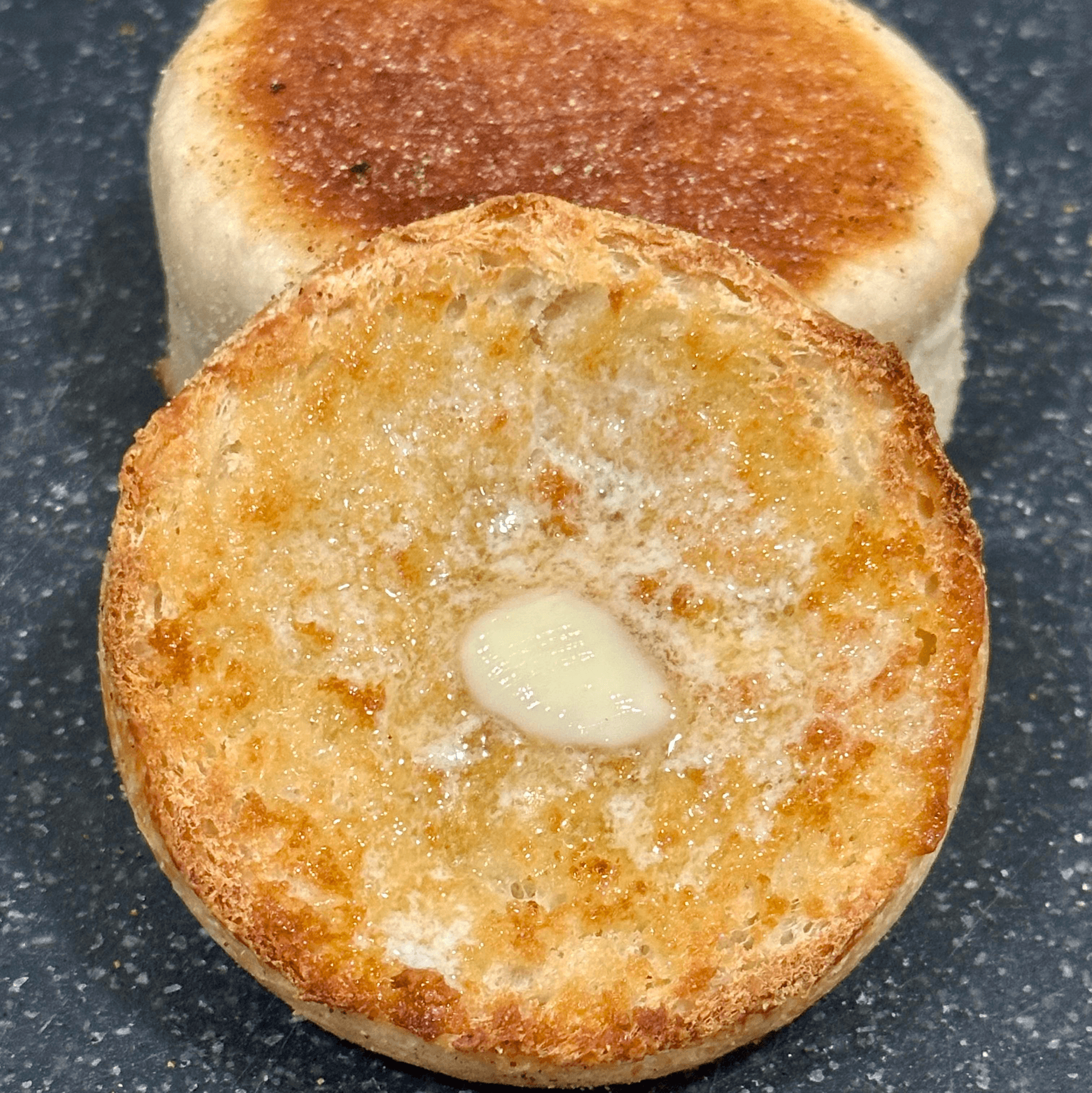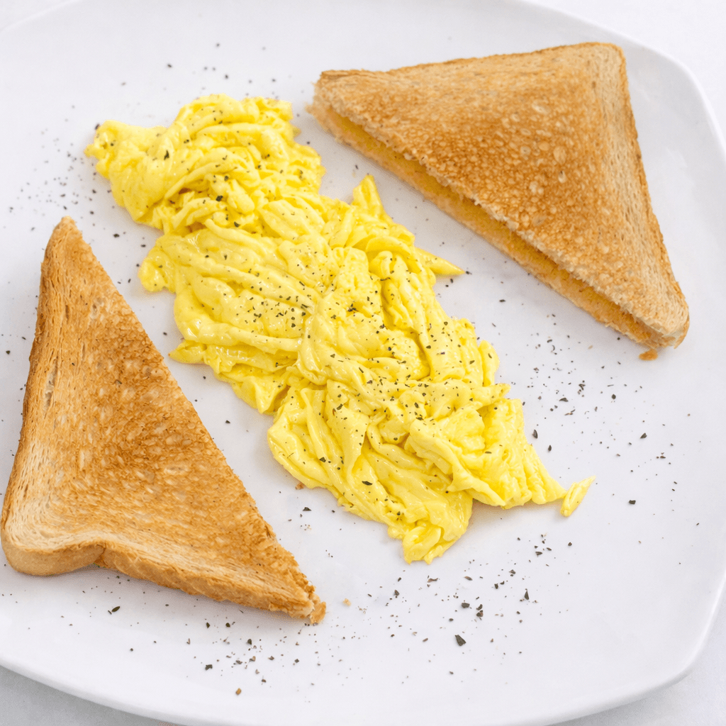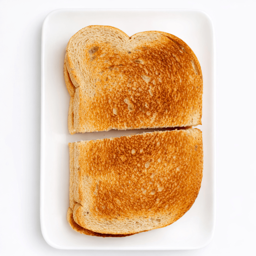 2 slices of toast with butter, Powdered sugar and syrup. Add strawberries, blueberries, bananas, or chocolate chips for an additional charge