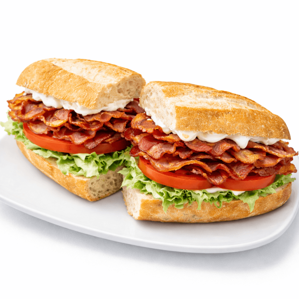Bacon, lettuce, tomatoes, and mayo on a 6" French bread