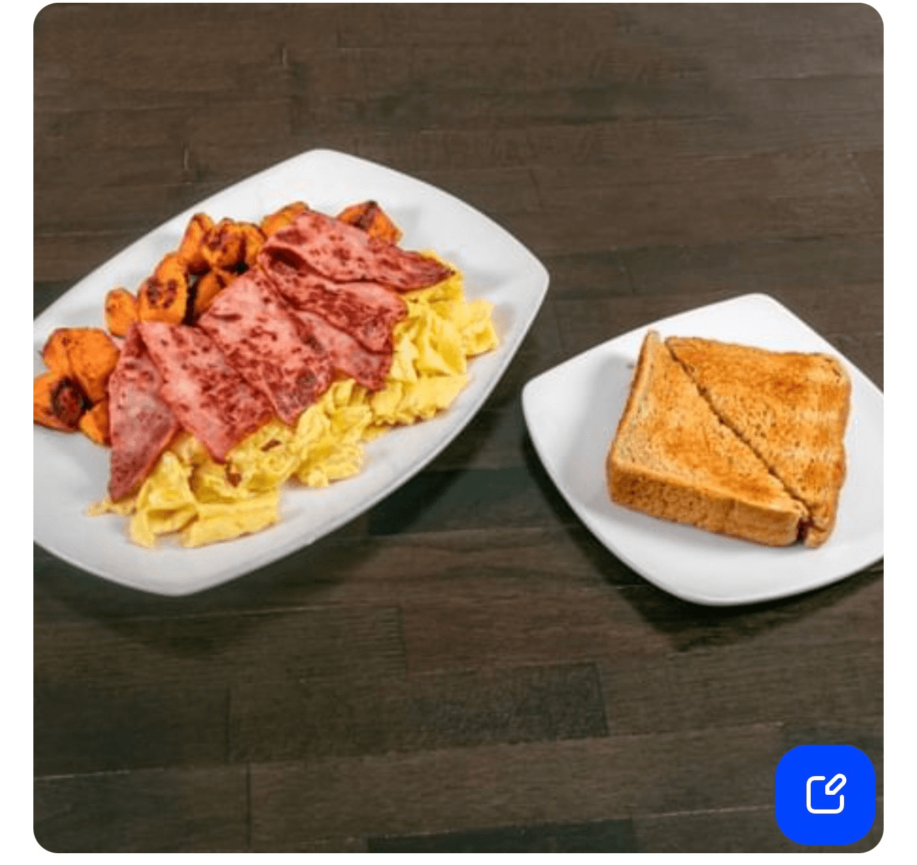 3 eggs any style, 2 slices of turkey bacon, house special sweet potatoes, and whole wheat toast