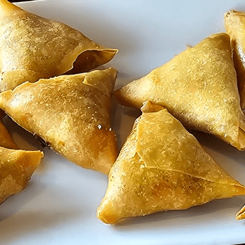 Vegetable roll (3), golden triangle (3), fried chive pancake (2), tofu triangle (4).