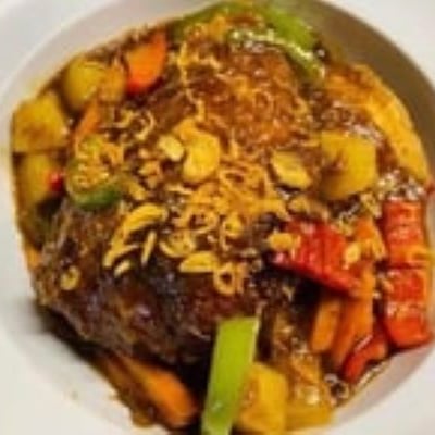 Peanuts, potato, onion, green peppers, & carrots and your choice of Meat