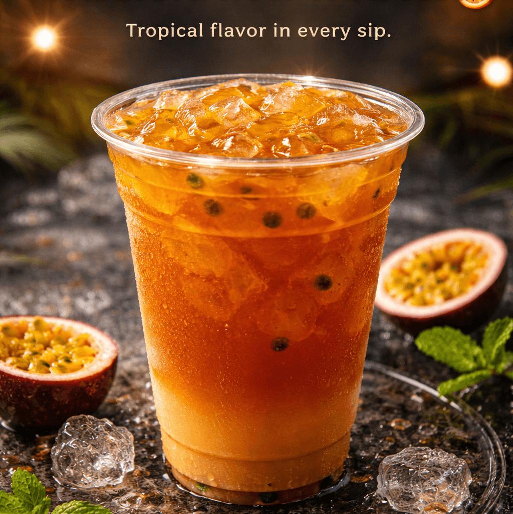 Refreshing Thai tea with passion fruit puree. (Non-dairy)